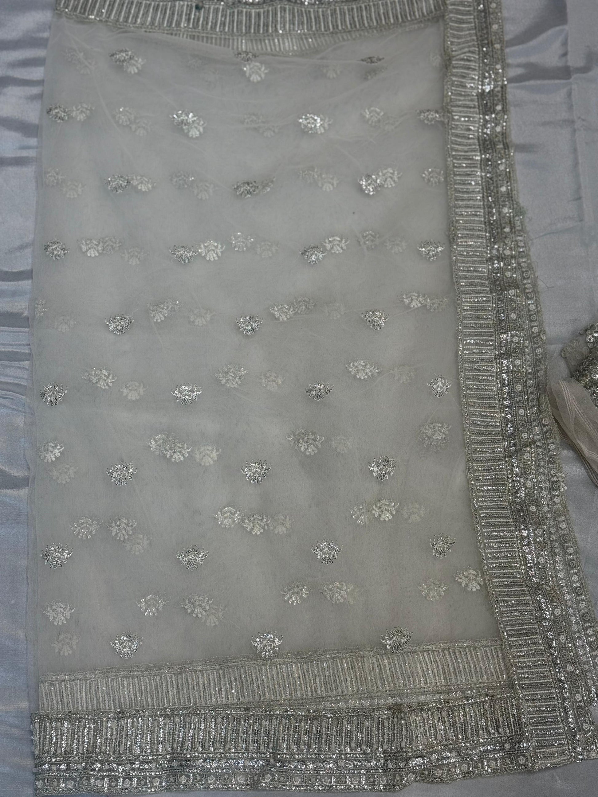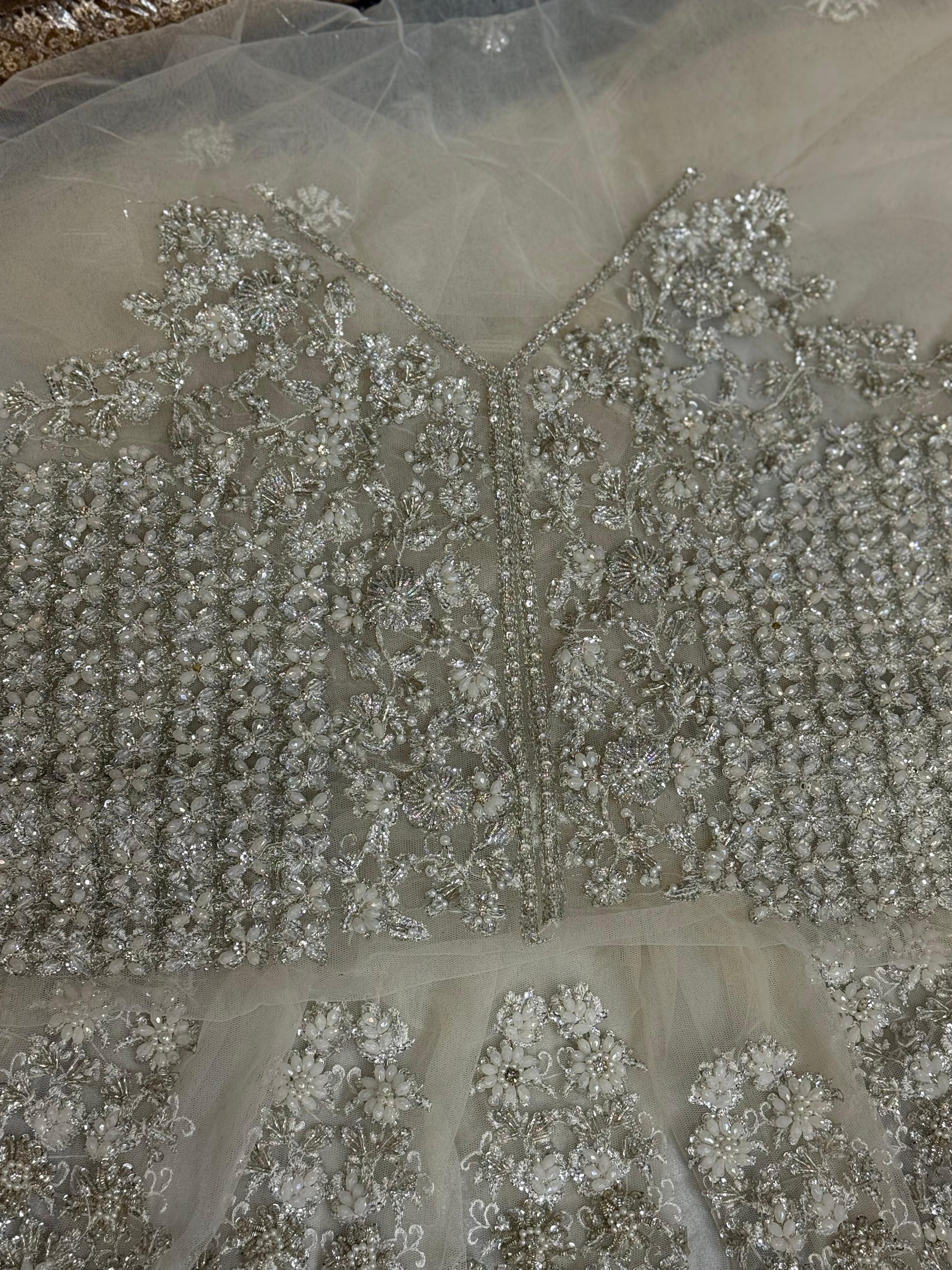 - Heavily embroidered back 7 panels on soft bareeze net.