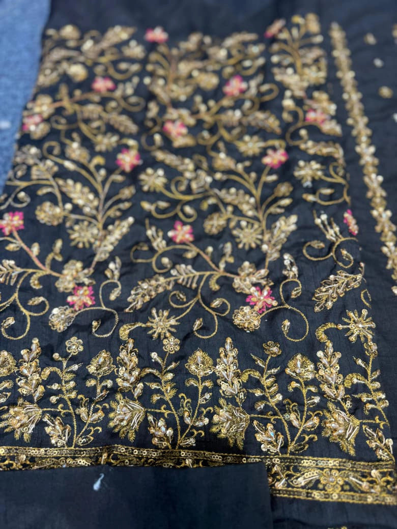- The Haris Shakeel Luxury Raw Silk Unstitched 3 Piece “Zainab” is a true embodiment of sophistication. Crafted from premium raw silk, its rich texture and refined finish make it the perfect choice for formal gatherings. This unstitched set offers endless versatility for personalized tailoring, allowing you to create a flawless fit that reflects your individual style. A timeless addition to your wardrobe, it blends luxury with comfort for the modern woman of refined taste.