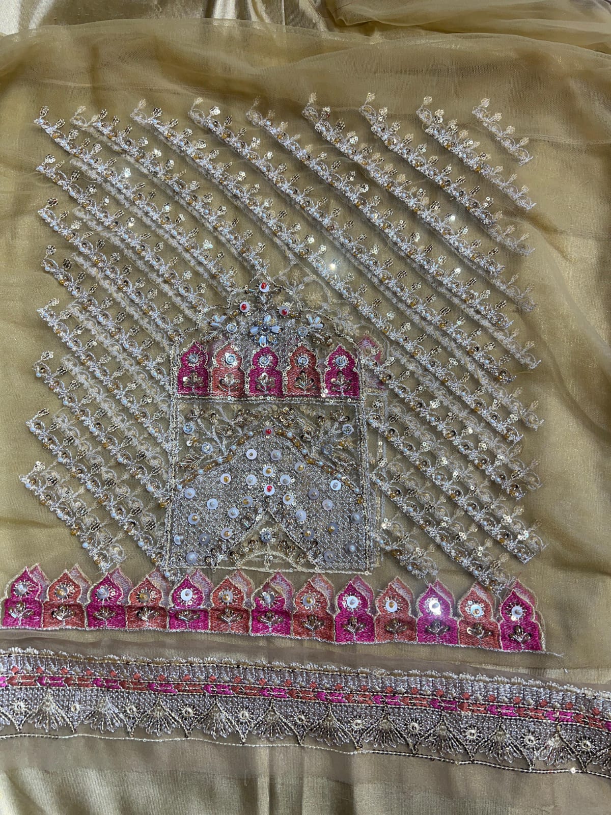 - Handwork front border on organza.
