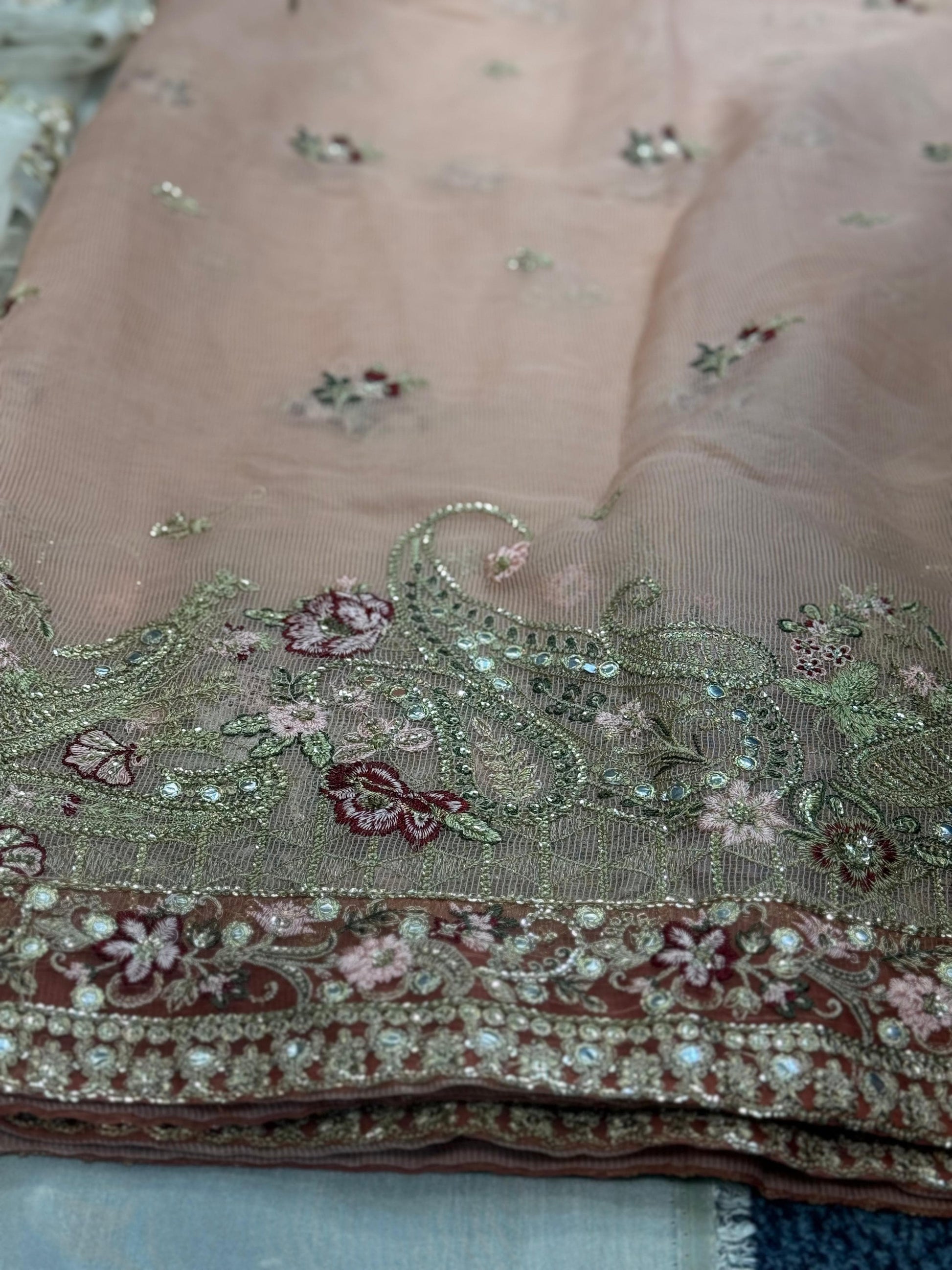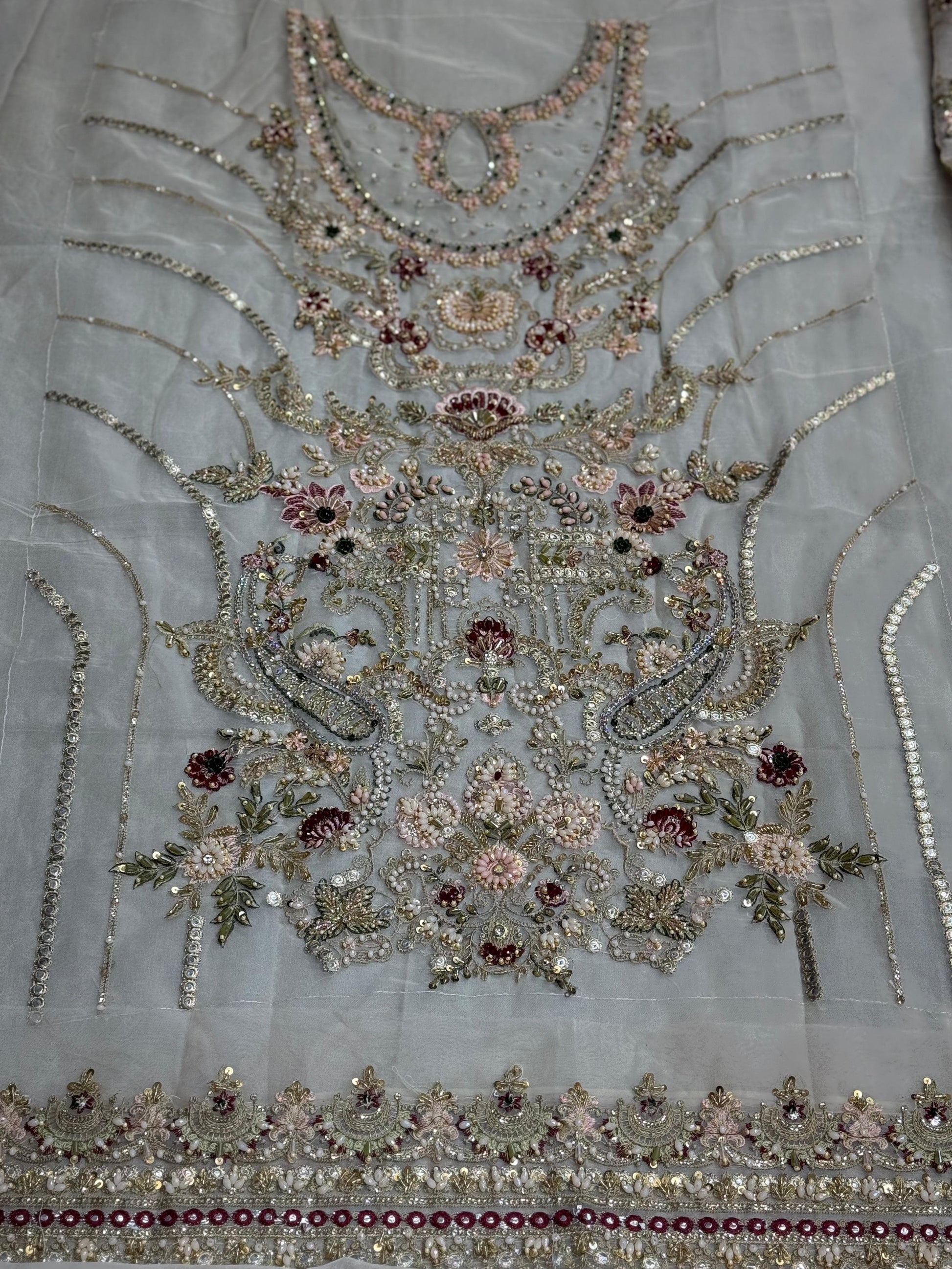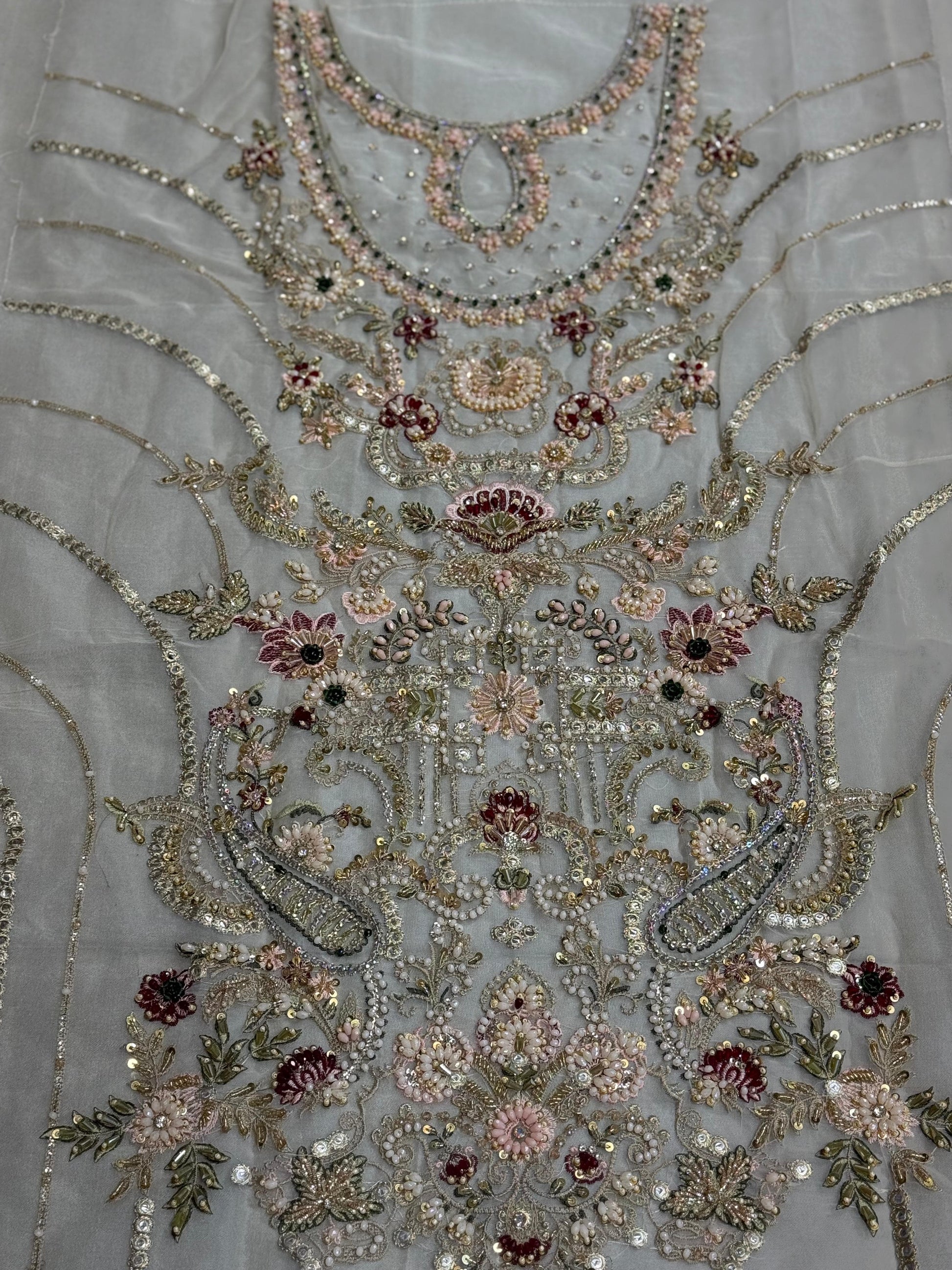 - Heavily handwork front on organza with stones, crystal, beats & foil work.
