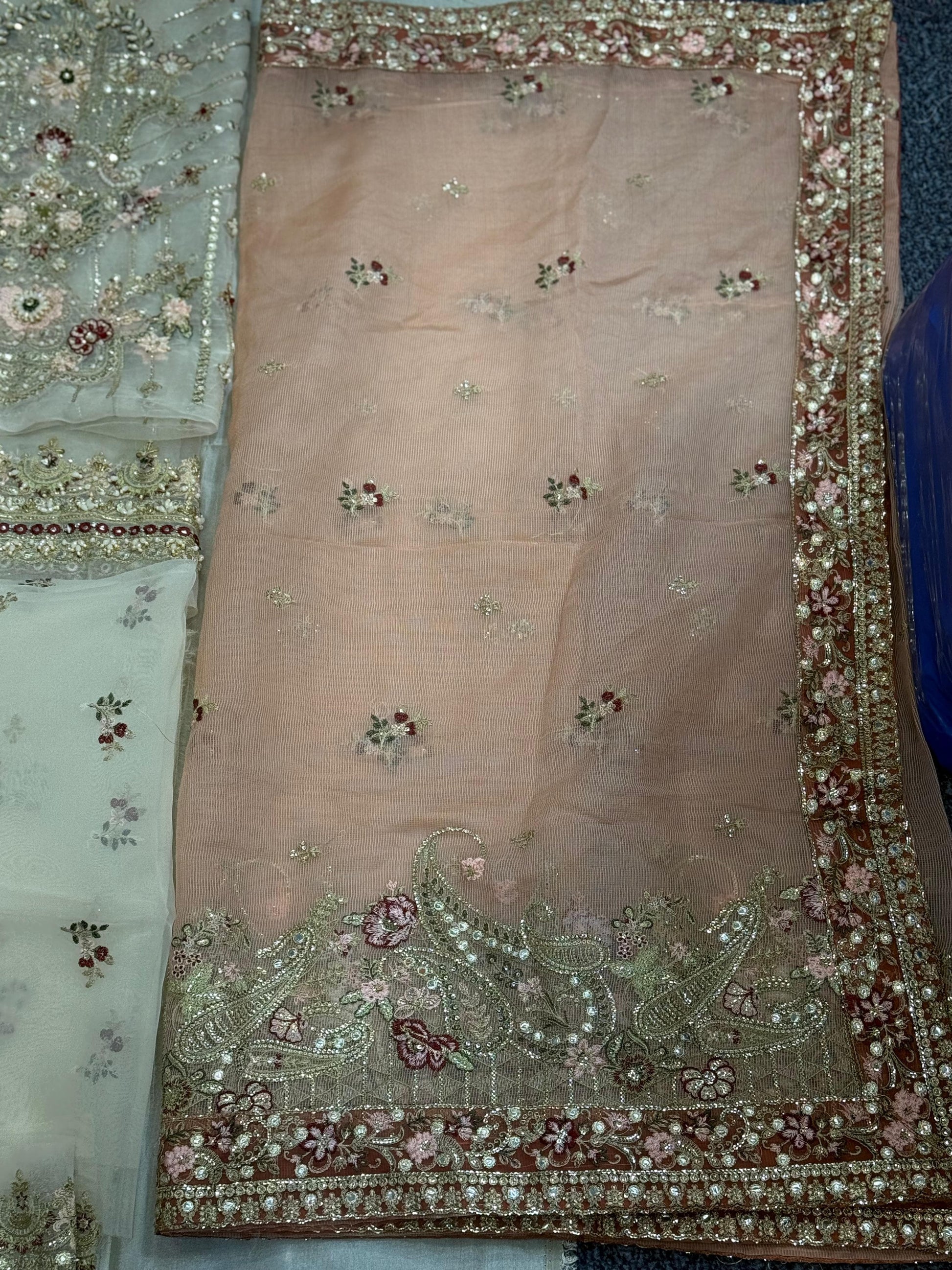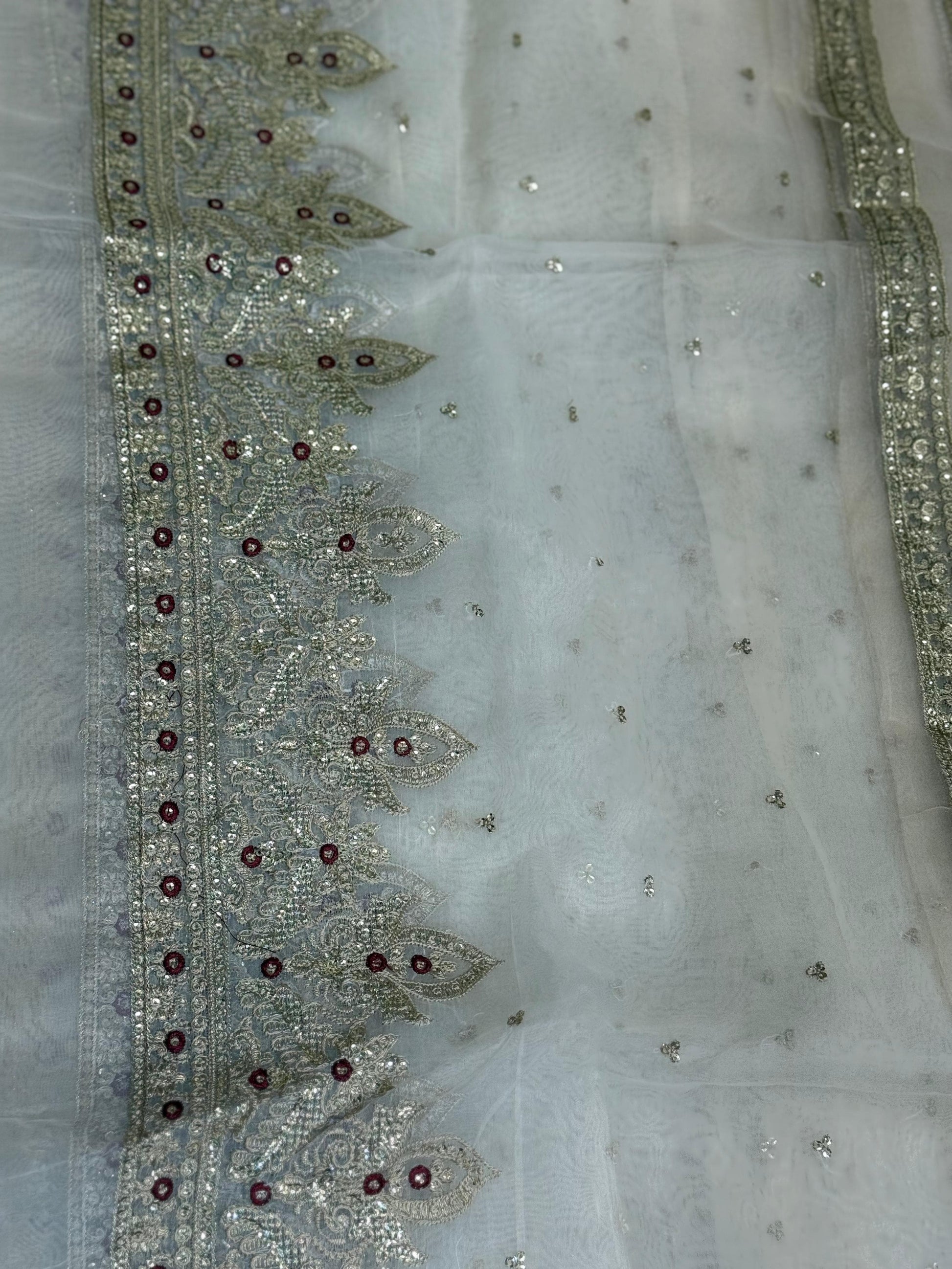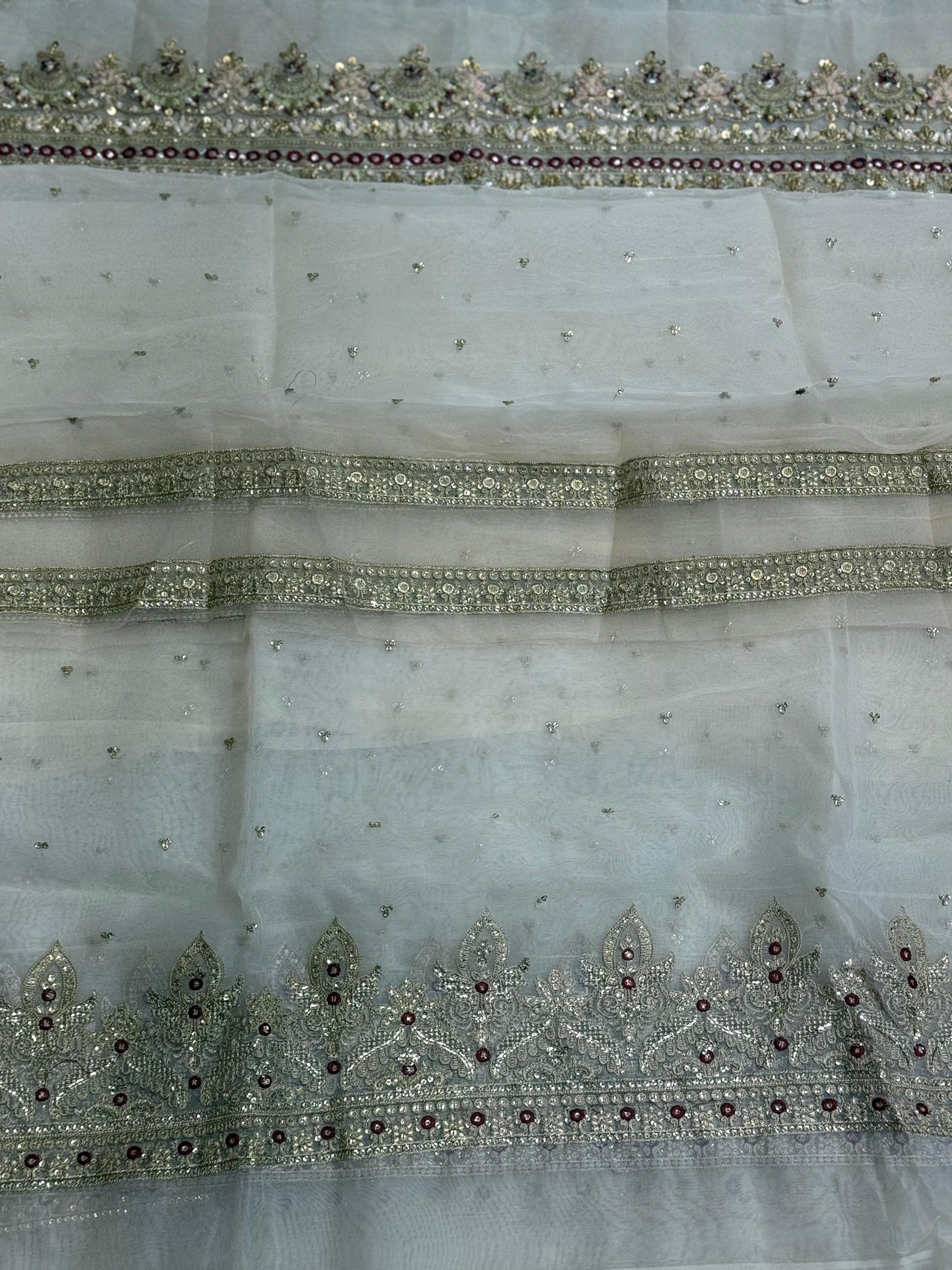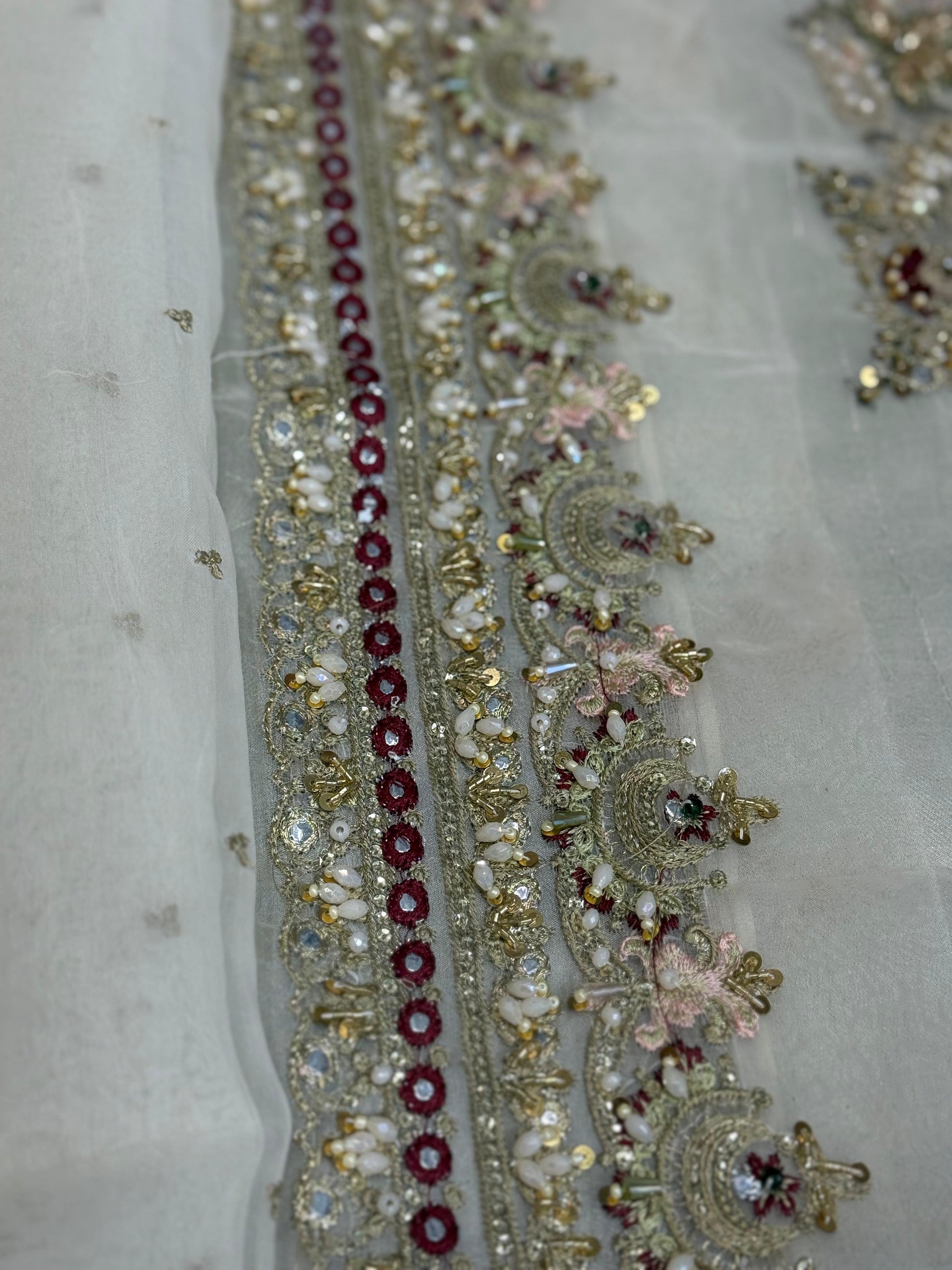 - Heavily handwork front on organza with stones, crystal, beats & foil work.
