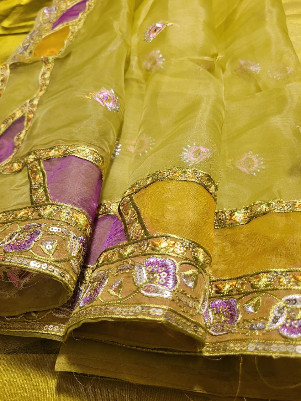 - Embroidered dupatta with sequence & four side border ready stitched on organza.