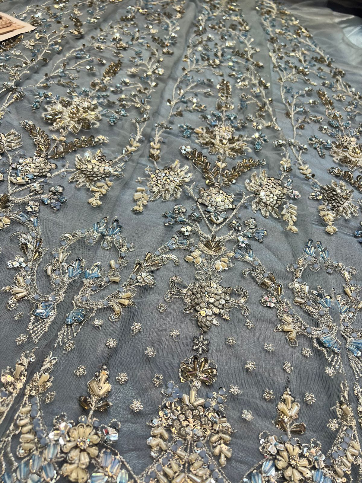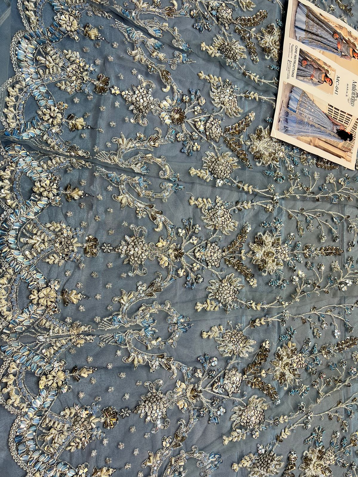 - Handwork sleeves with perals, stones & sequence.