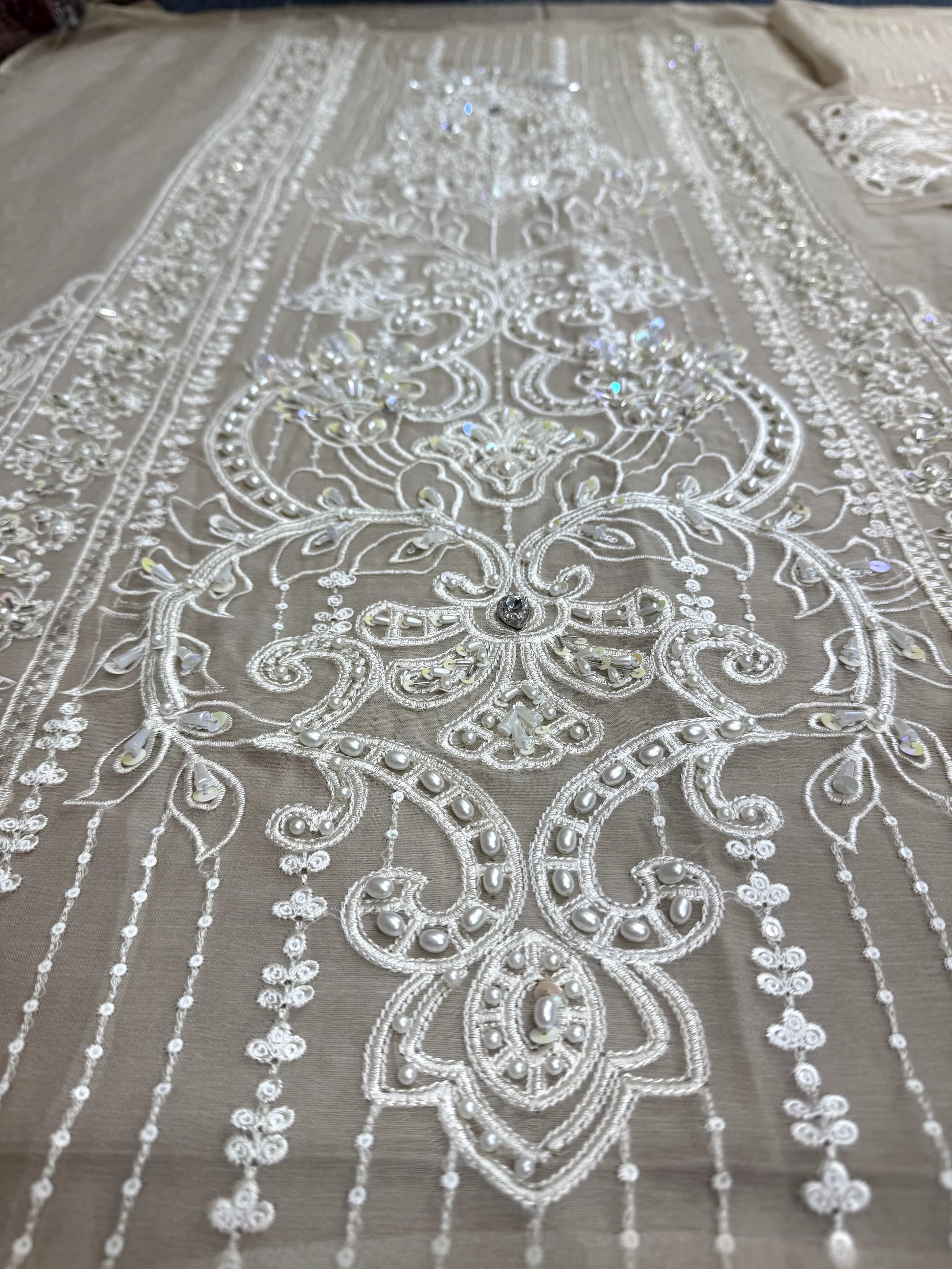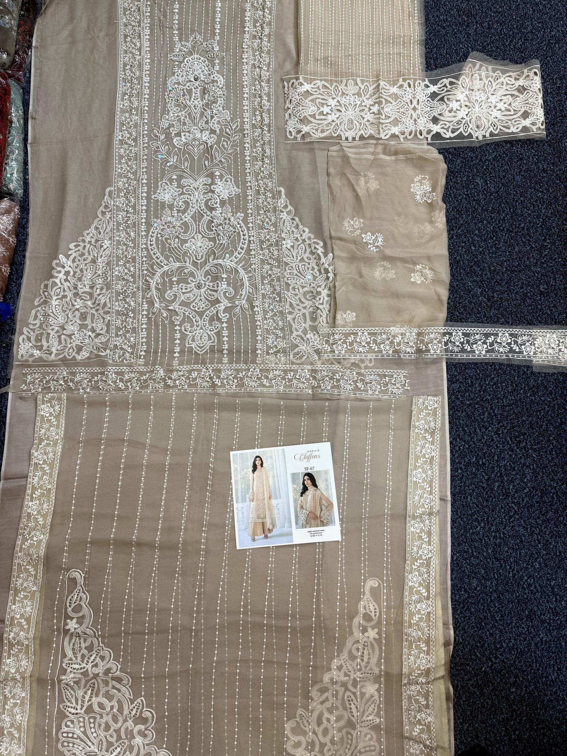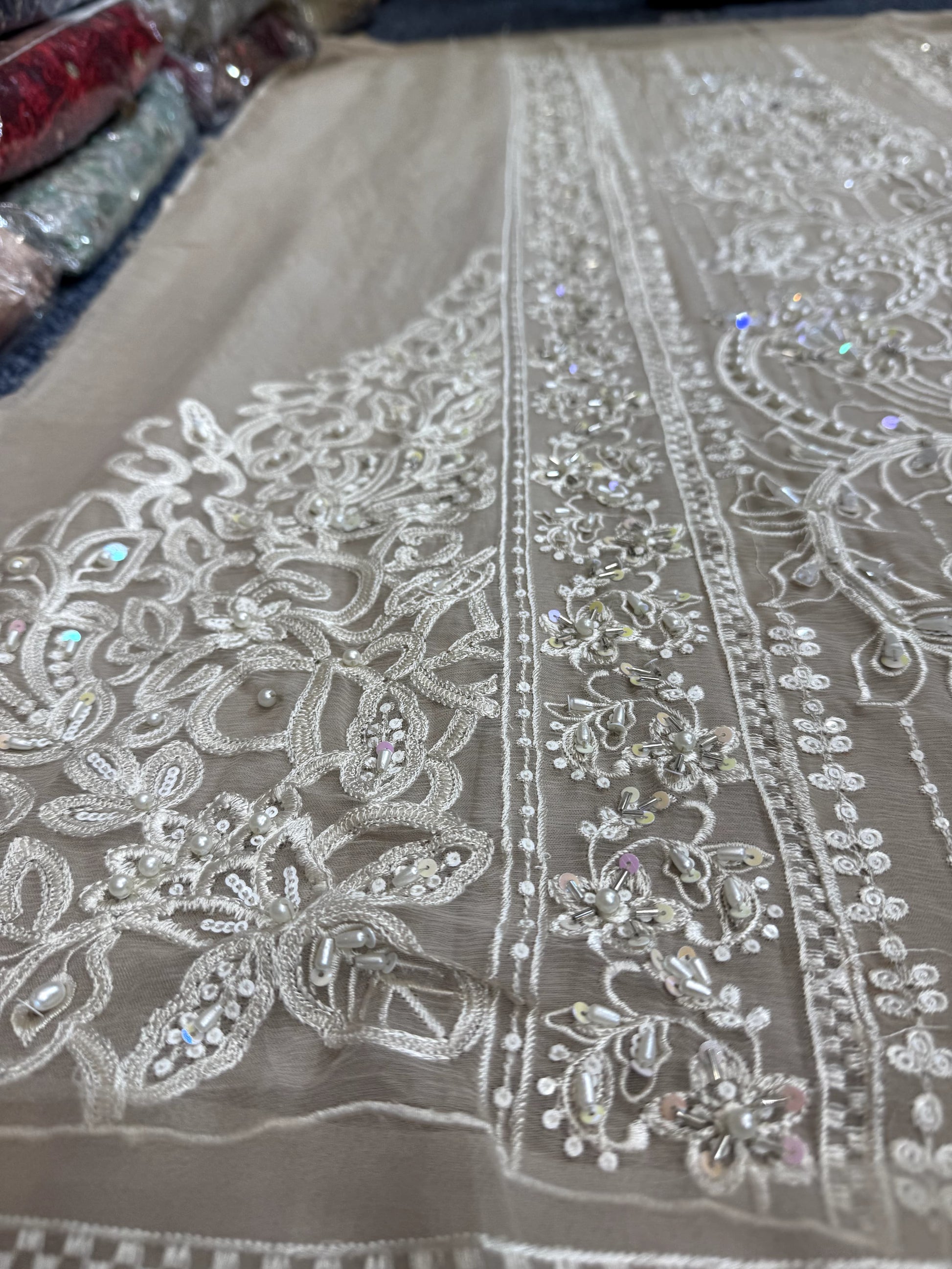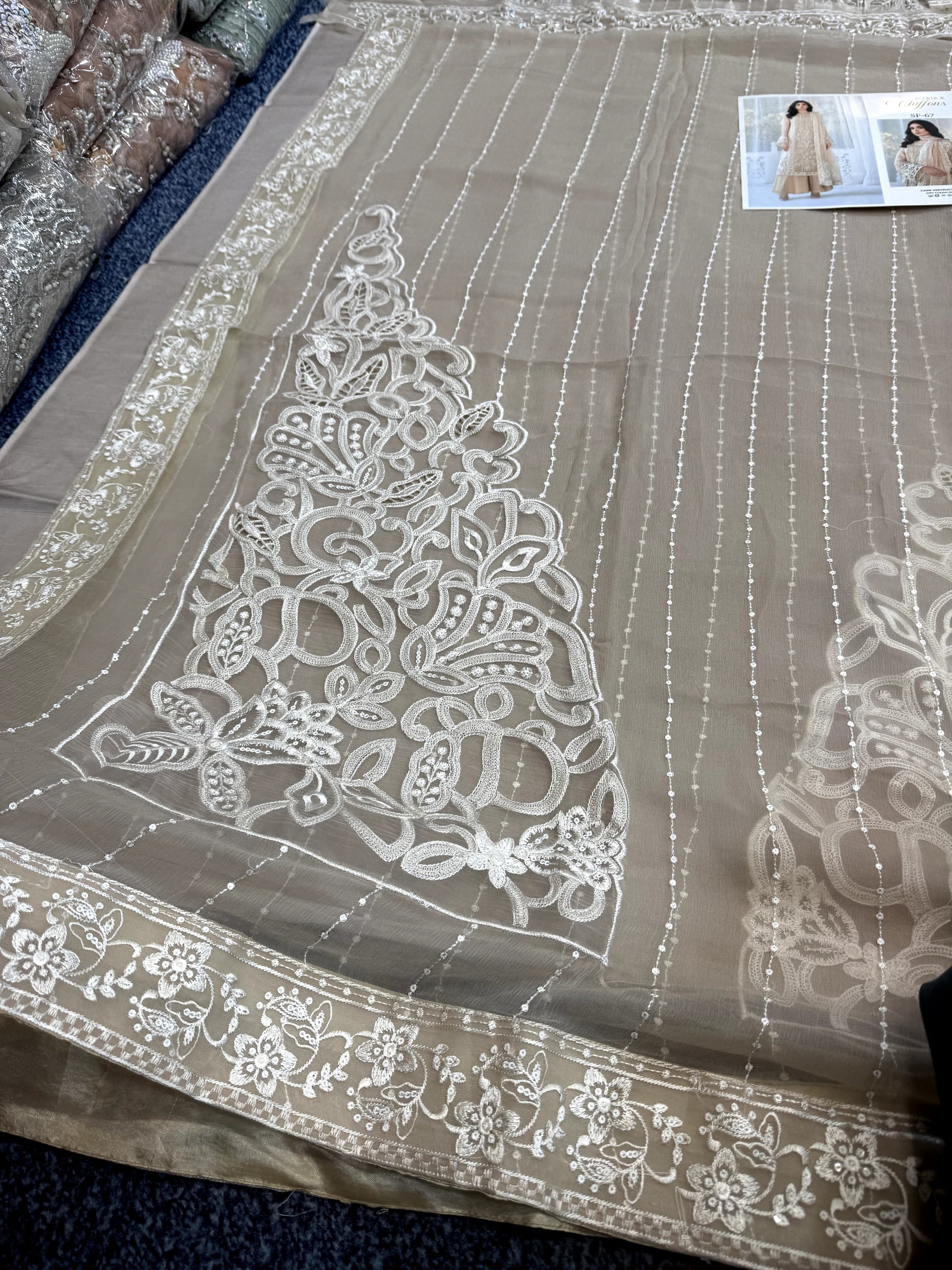 - Handwork front on pure chiffon with sequins, stones and heaivly thread.
