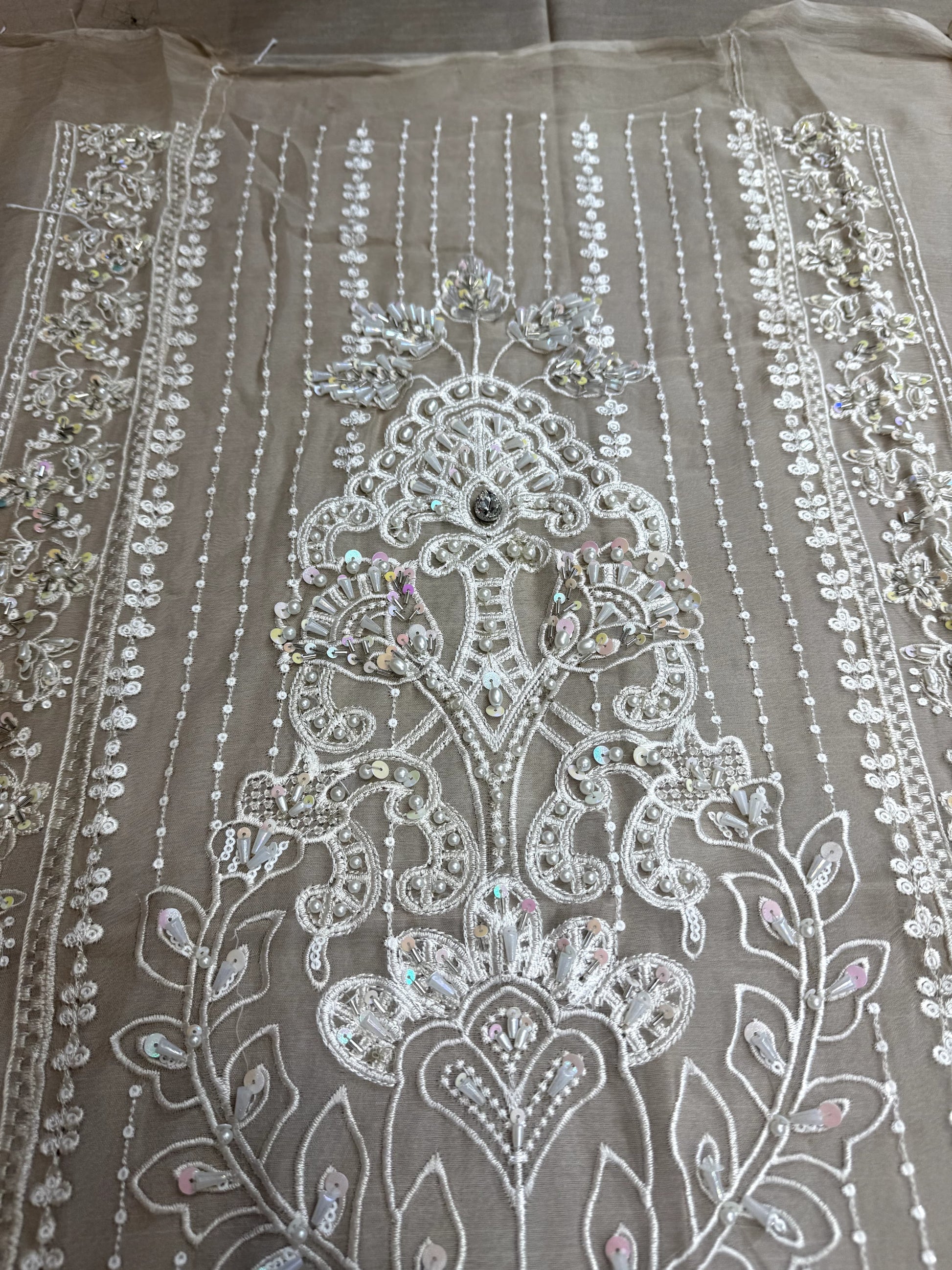 - Organza front patti with perals and sequins.