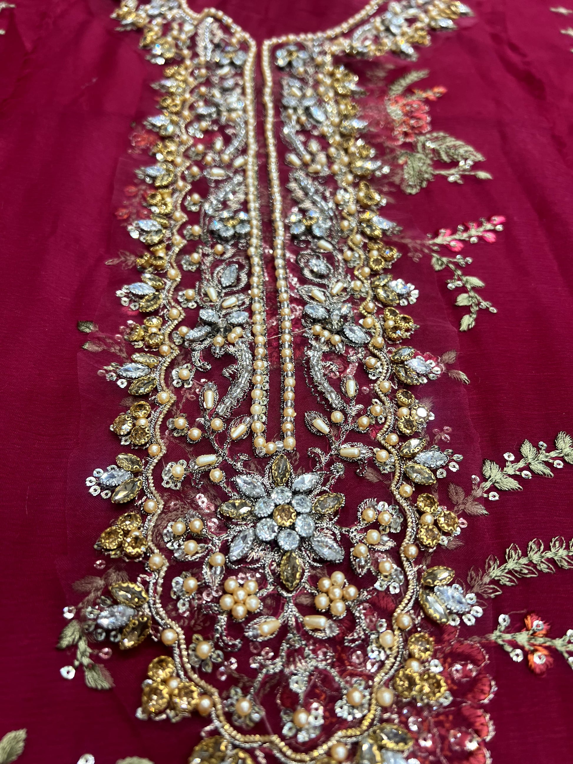 - Embroidered chiffon front & side panels with sequence and thread work.