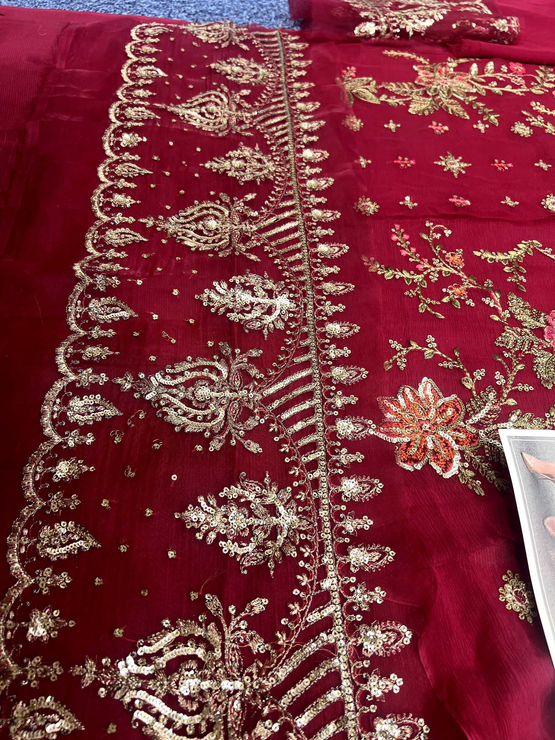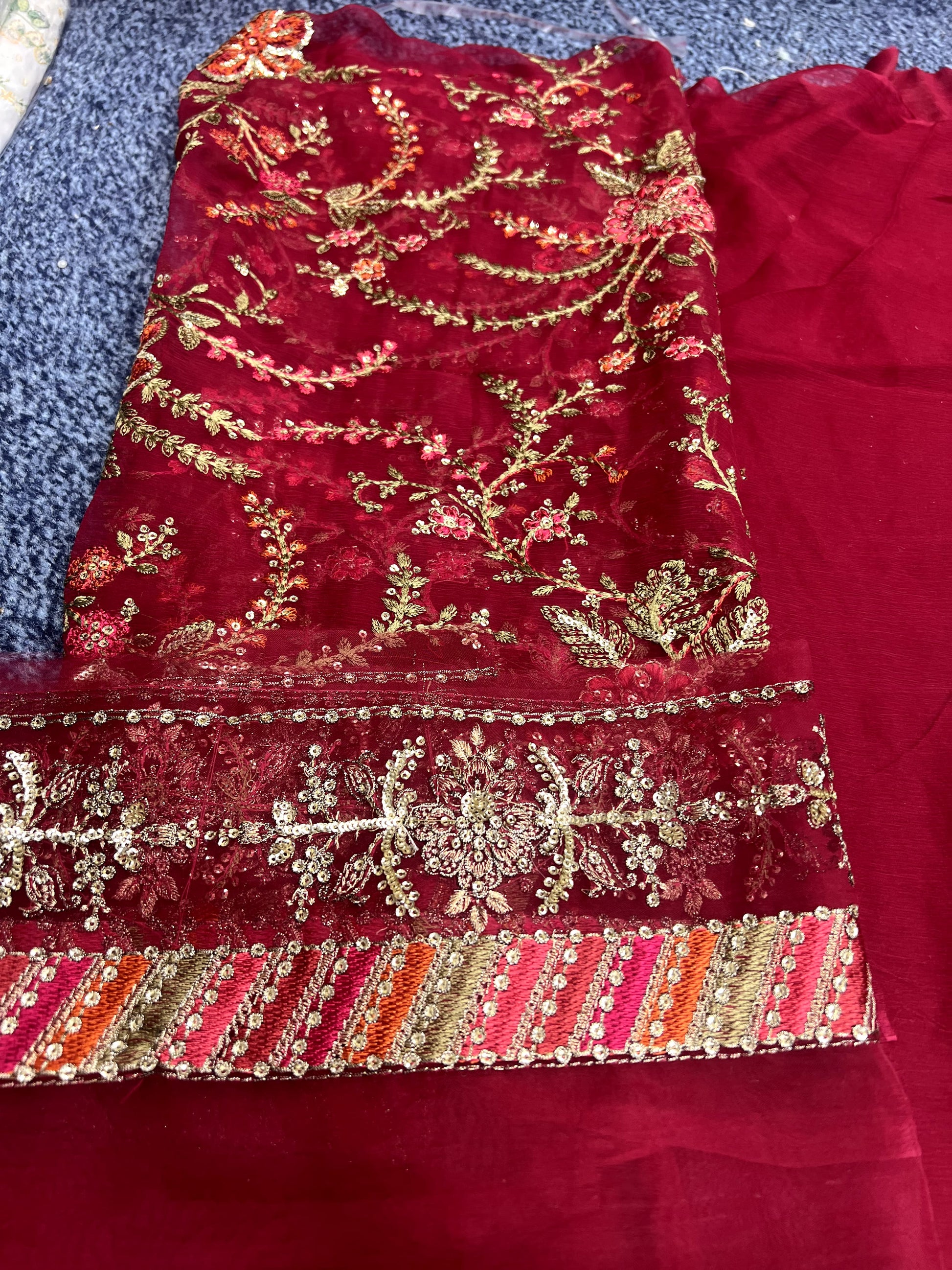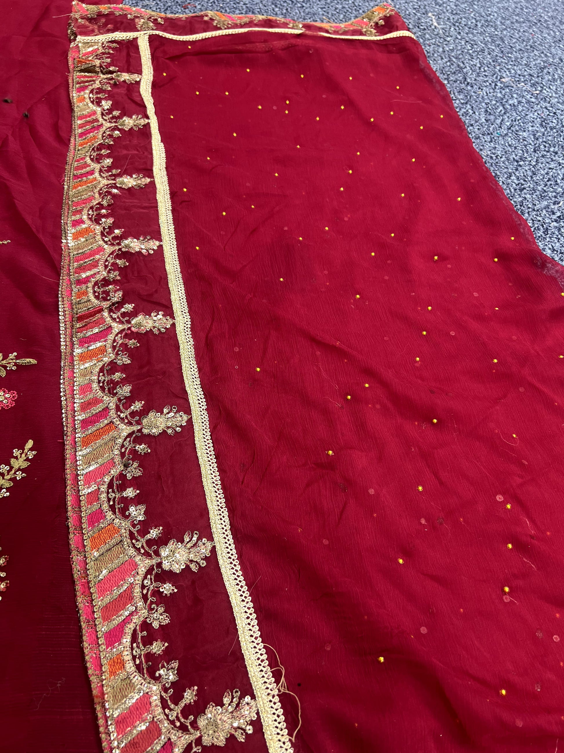 - Ready to wear dupatta on chiffon with Diamantes.
