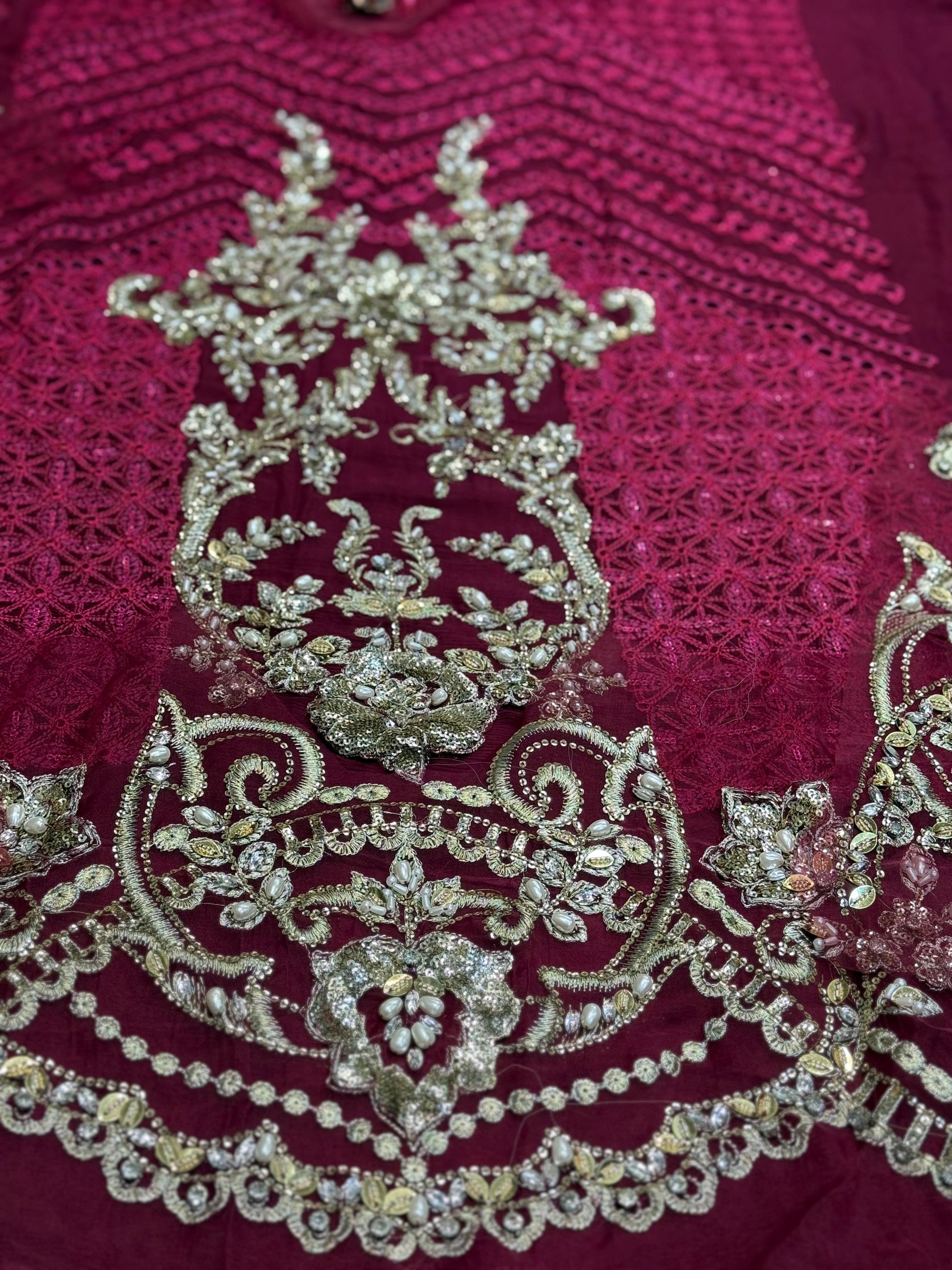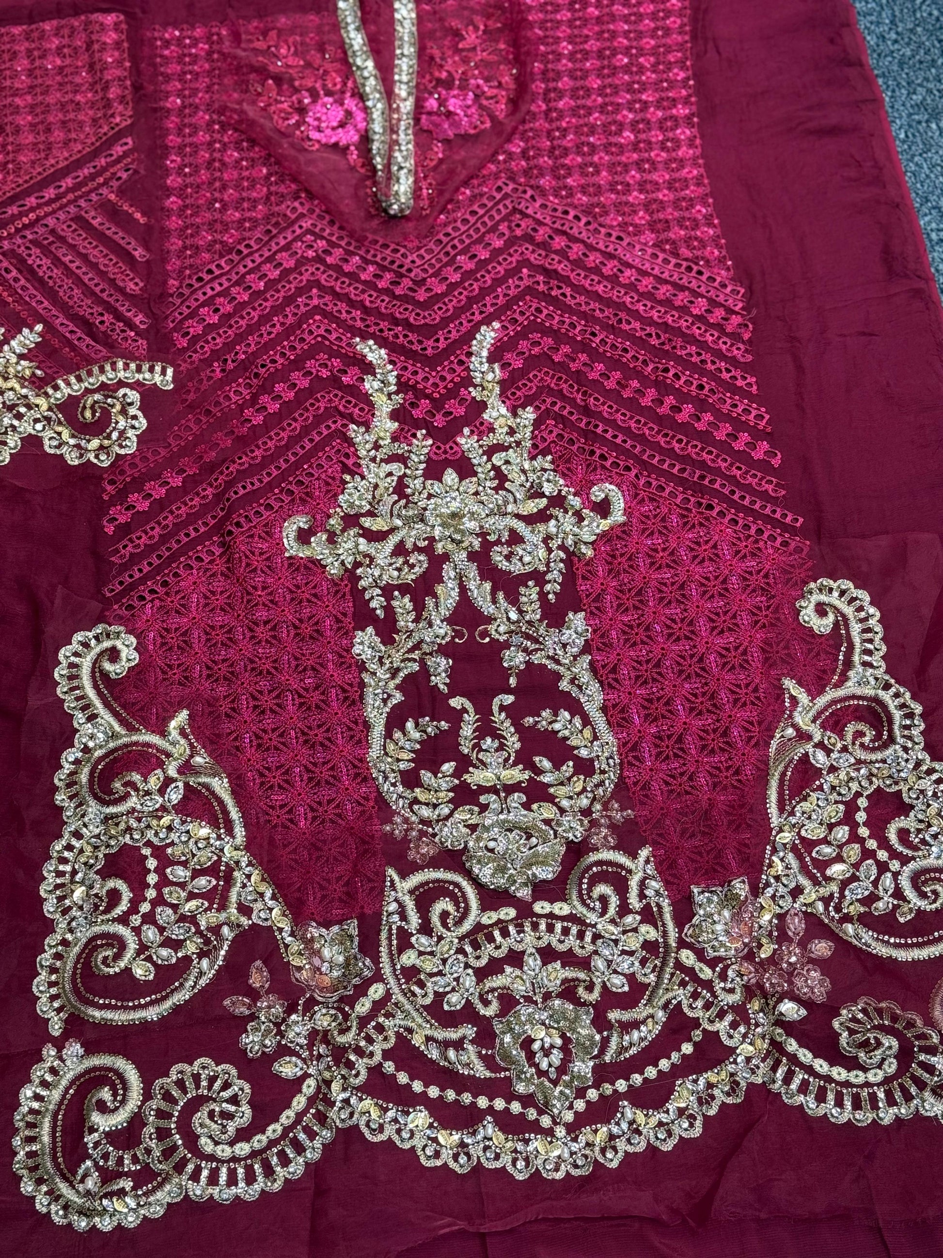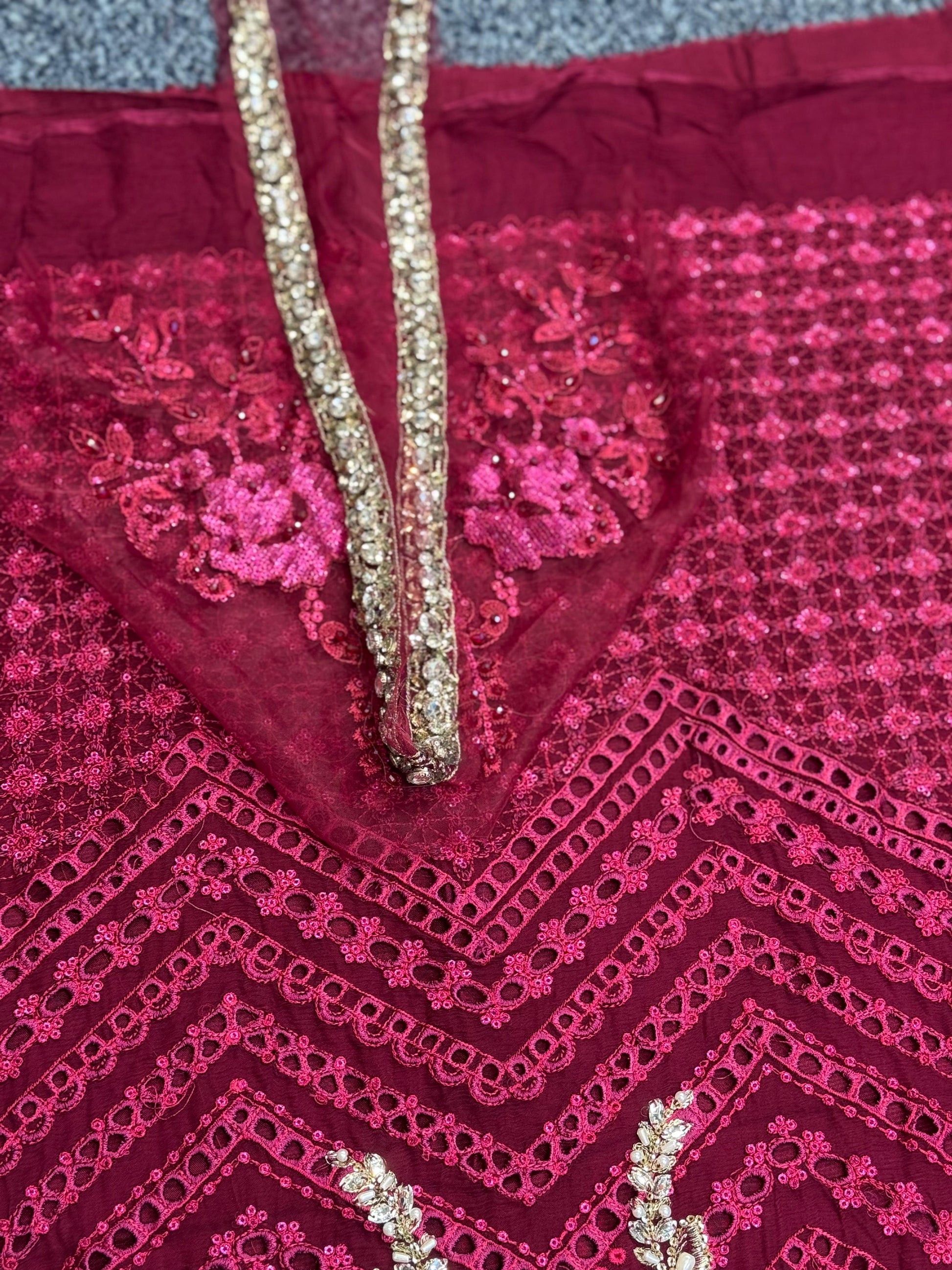 - Embroidered chikankari front on pure chiffon with sequins and heaivly thread.