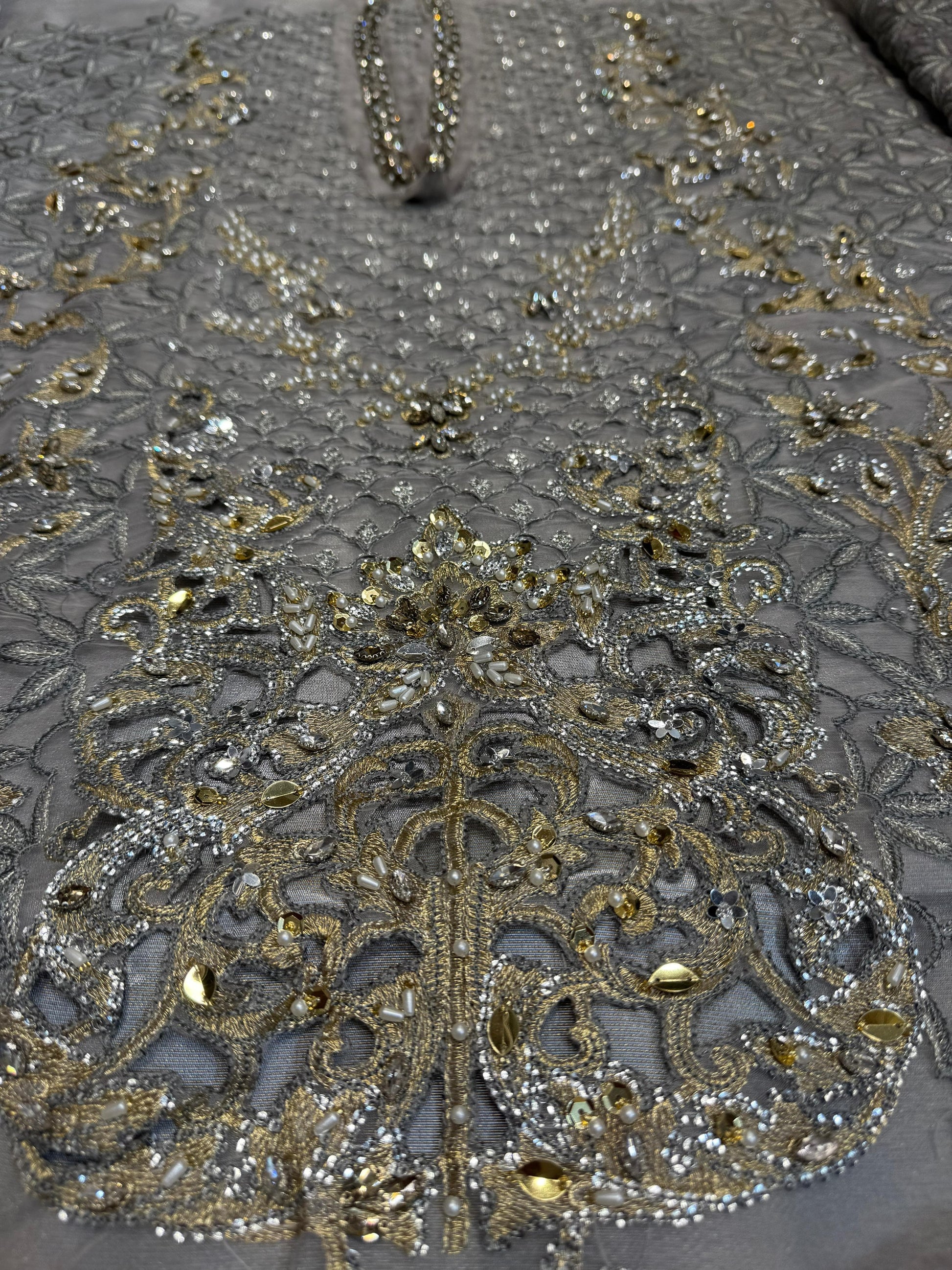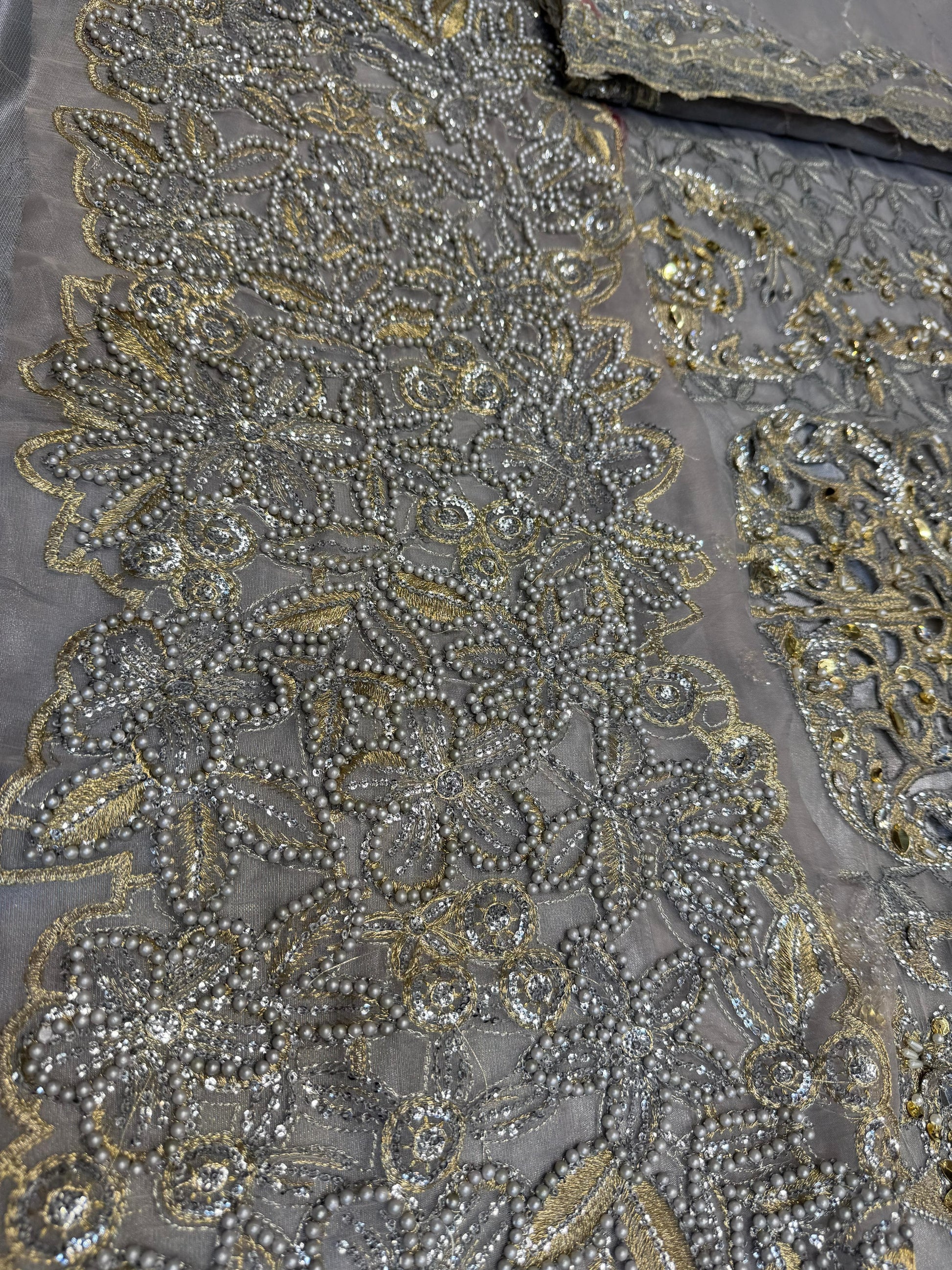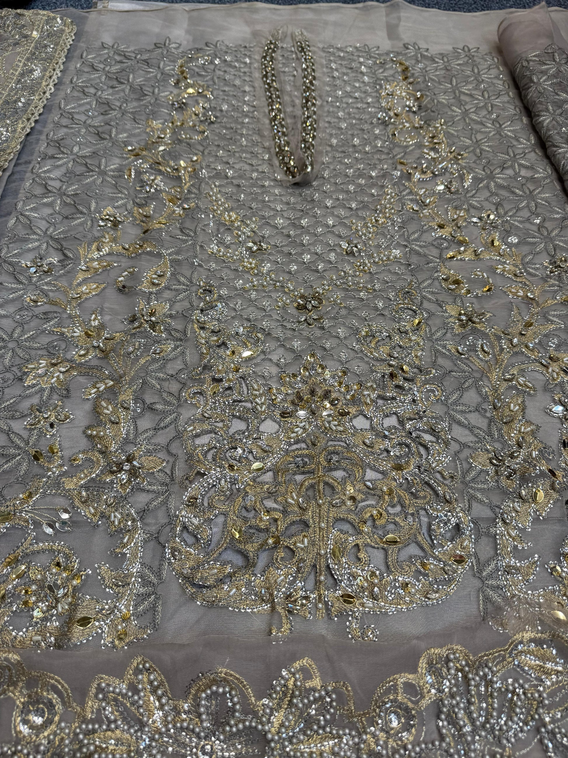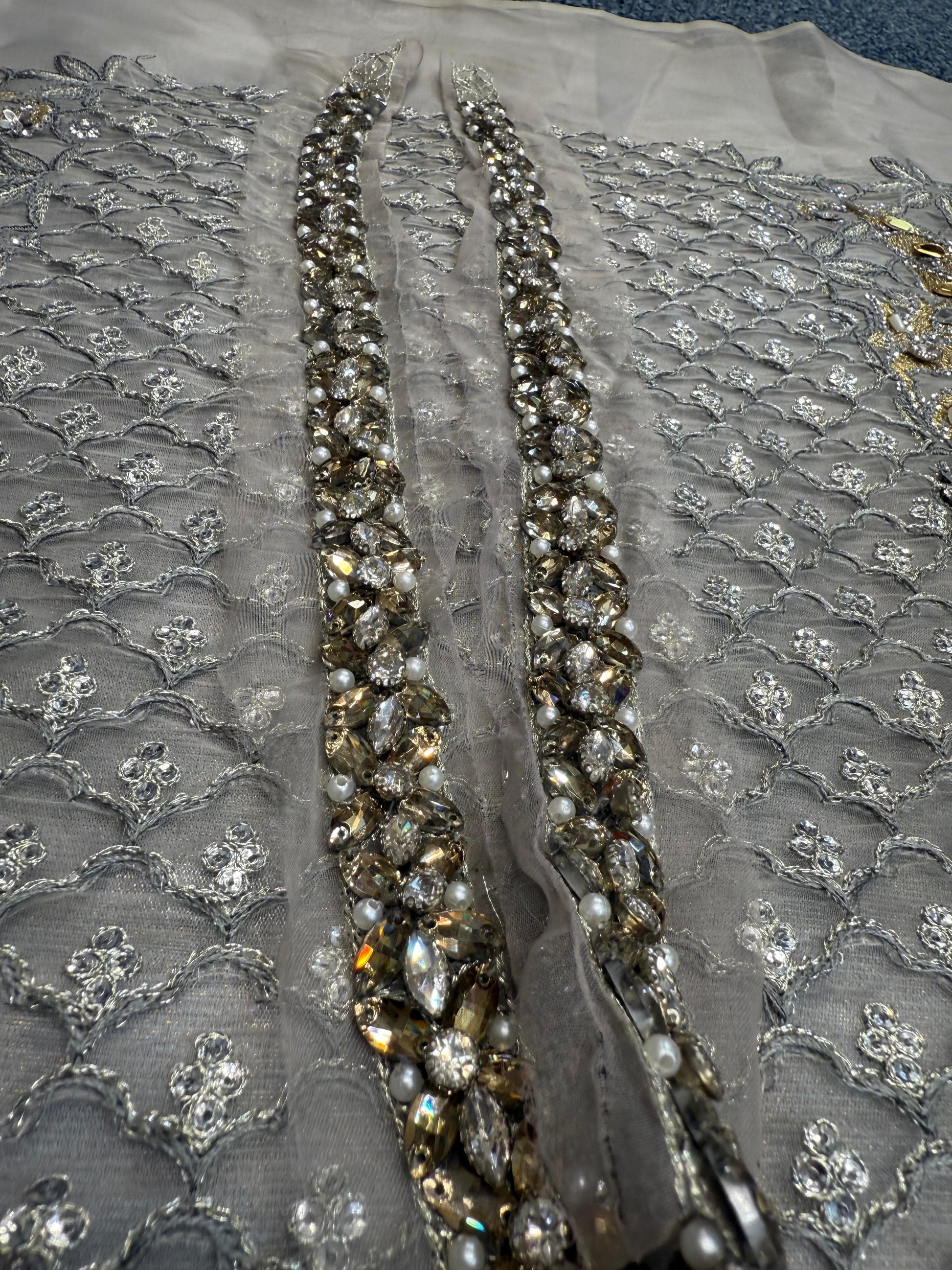 - Embroidered Organza Center Panel With Luxury Hand Embellishment