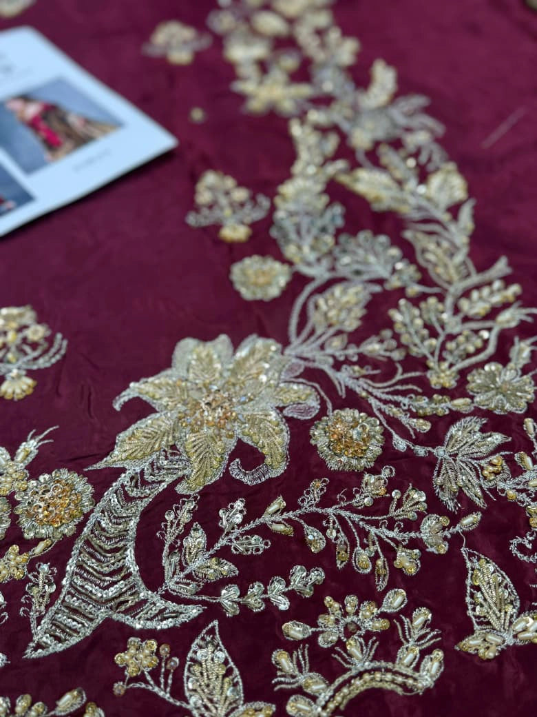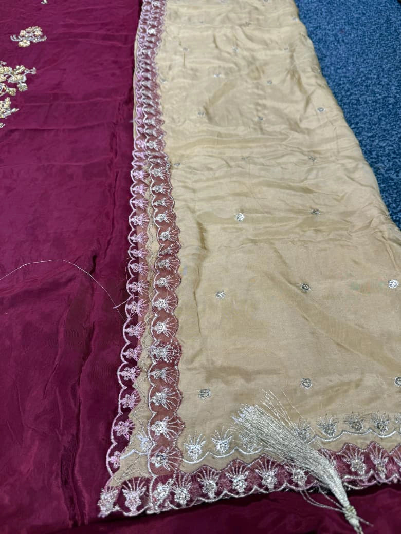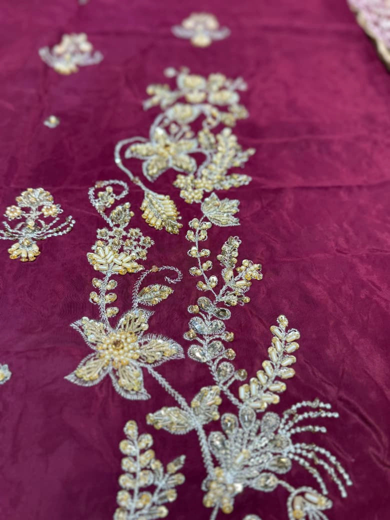 - Pure Tassel Silk heavily handwork front with crystals, kora, dabka work.