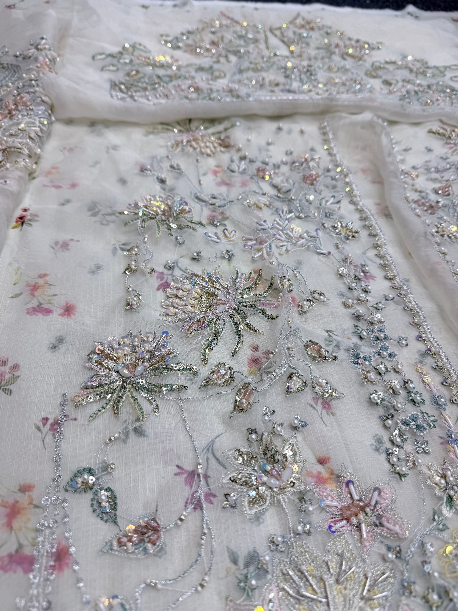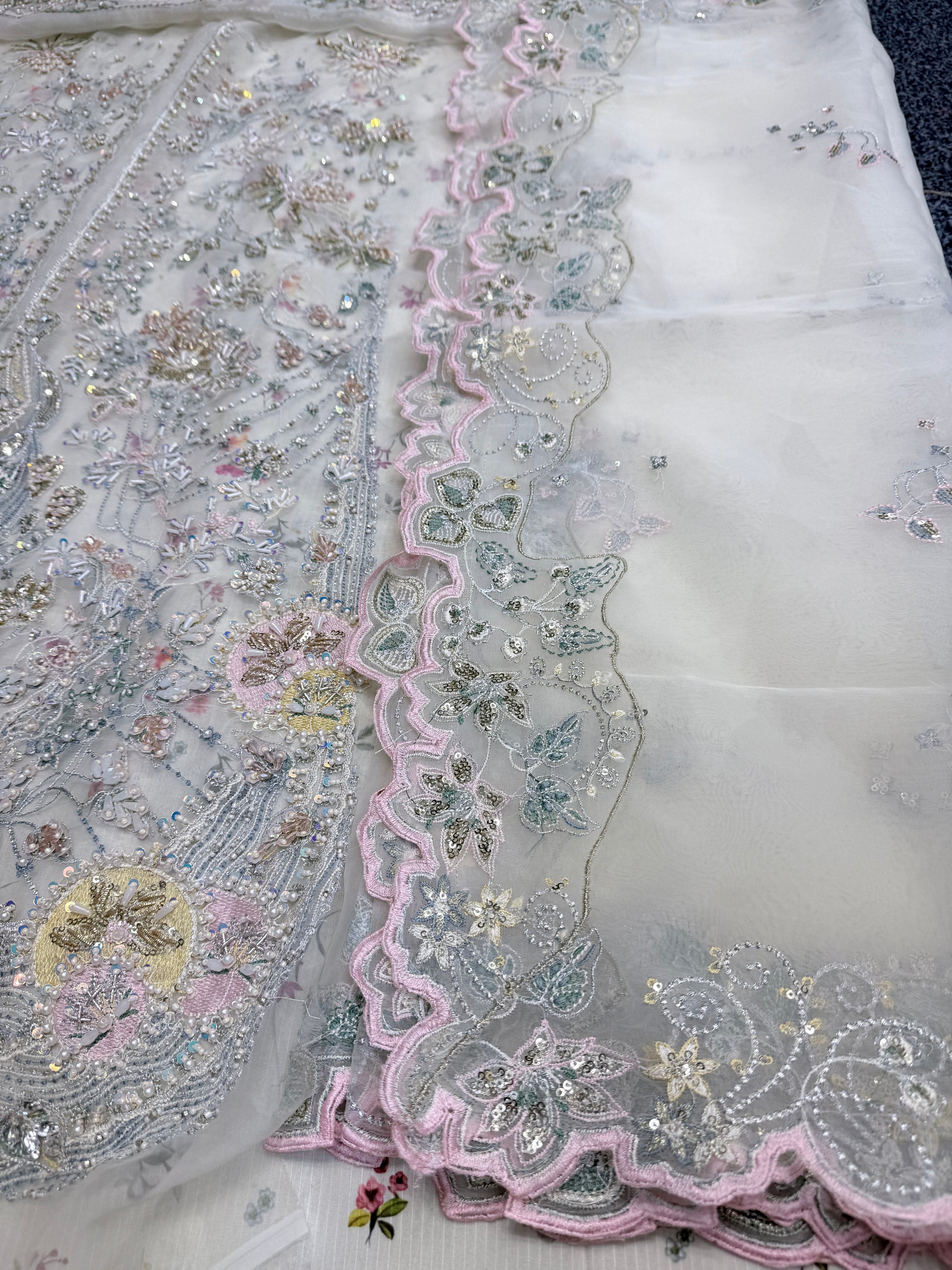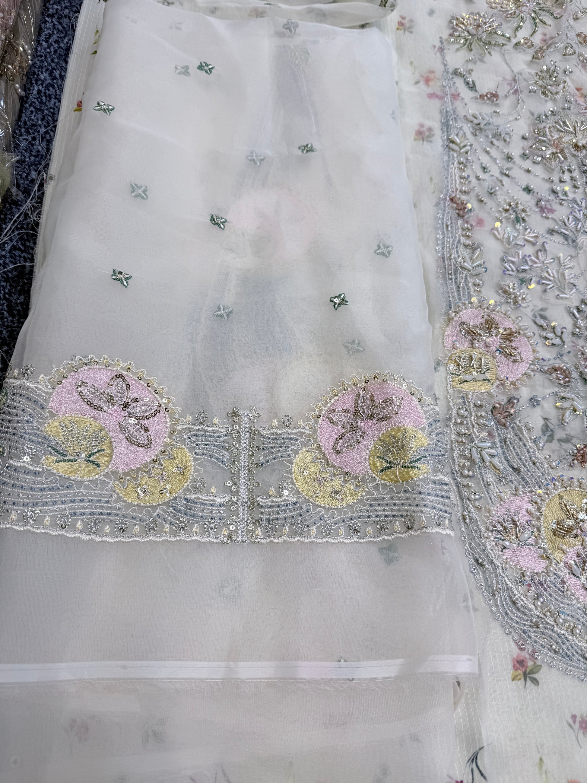 - Soraya brings you a beautiful three piece unstitched ensemble made from premium organza, showcasing detailed embroidery from the Novara collection. The luxurious fabric drapes softly and gives an elegant, airy feel perfect for creating refined formal outfits. Since it’s unstitched, you have full freedom to design and tailor it exactly the way you like. Ideal for weddings, celebrations, and special events, this outfit blends traditional craftsmanship with a modern, stylish touch. The delicate embroidery adds charm and sophistication, making it an excellent choice for anyone looking for bespoke luxury in their wardrobe.